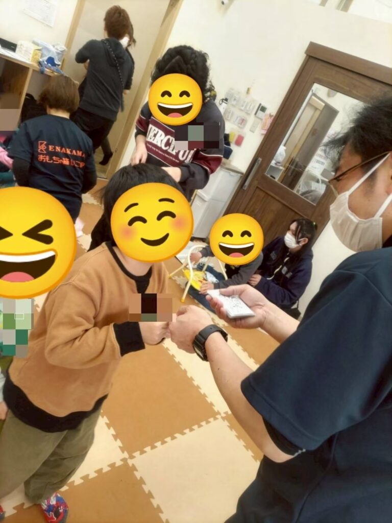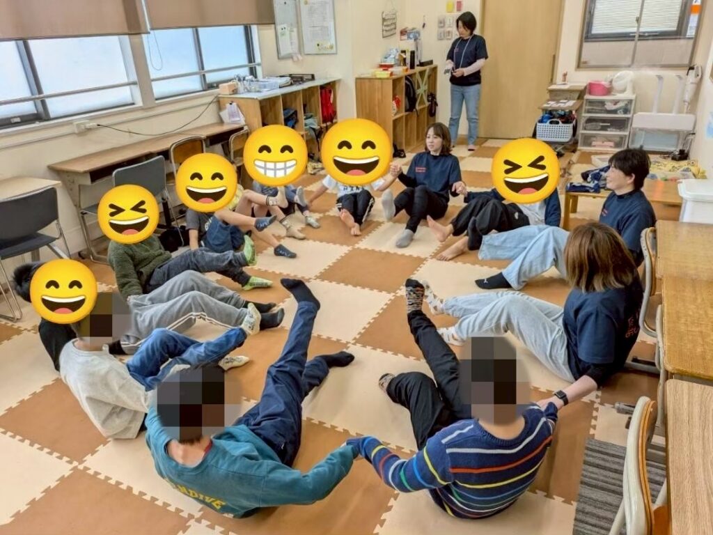 長期休みの時は、最後に課題曲をみんなで歌います。春休みはお友達からのリクエストの曲でした。初めは、全く知らない曲だった利用者さんも、みんなで歌うと楽しくて覚えていきますね。最終日には、おもちゃ箱に響き渡る元気な声で歌うことができました。