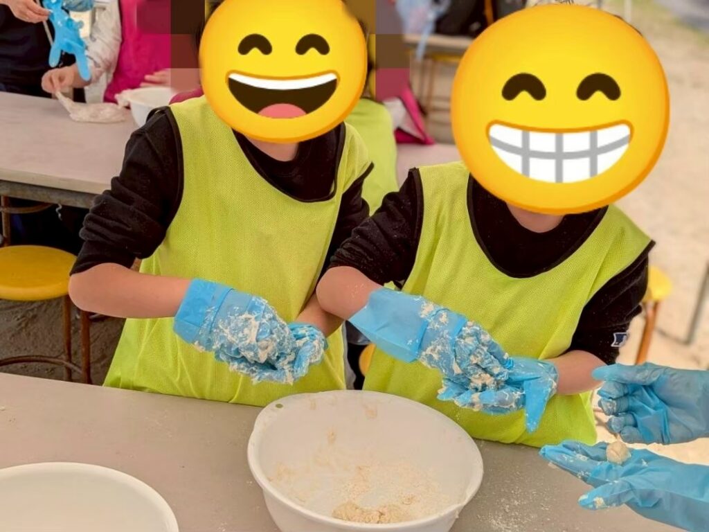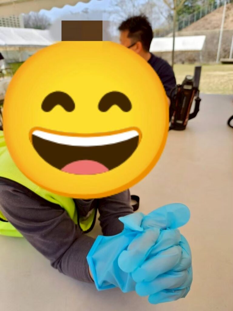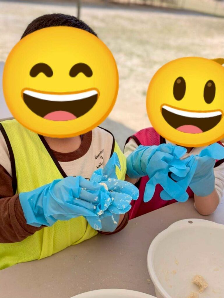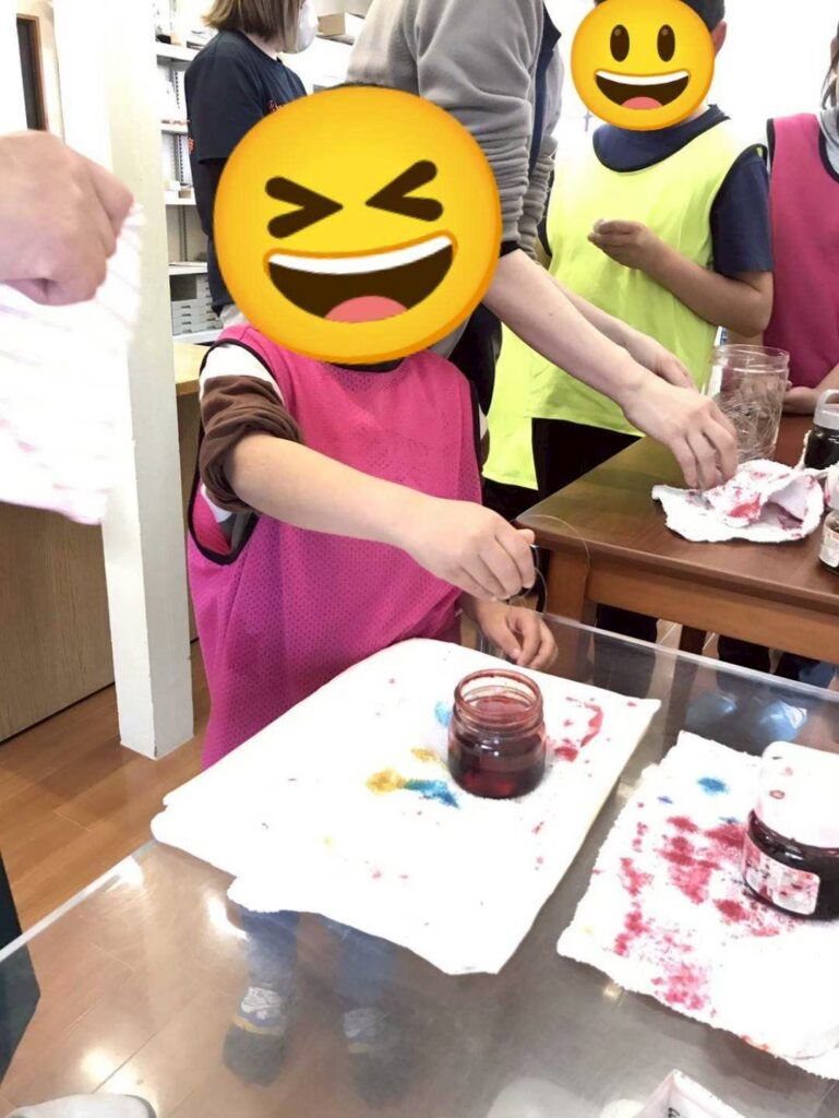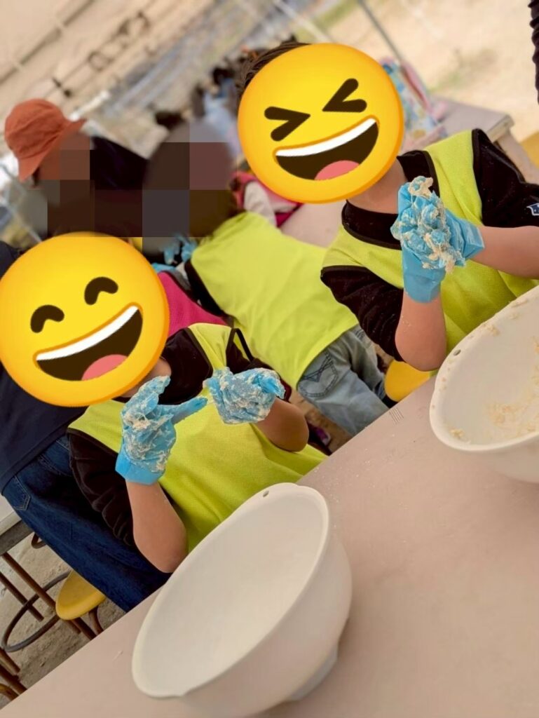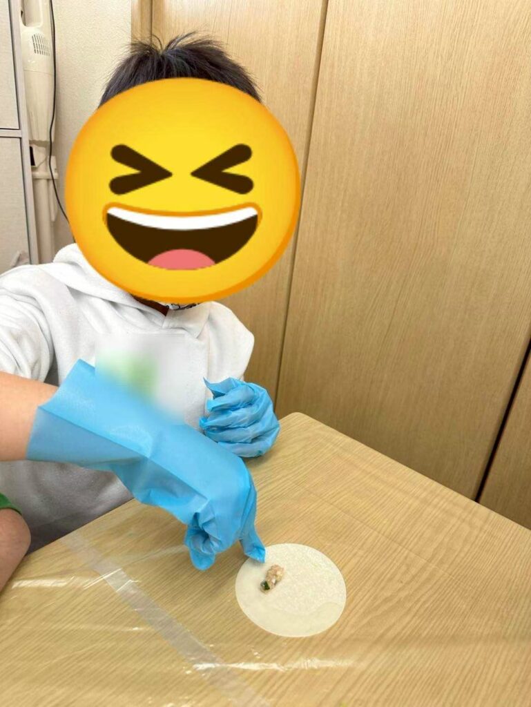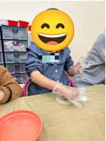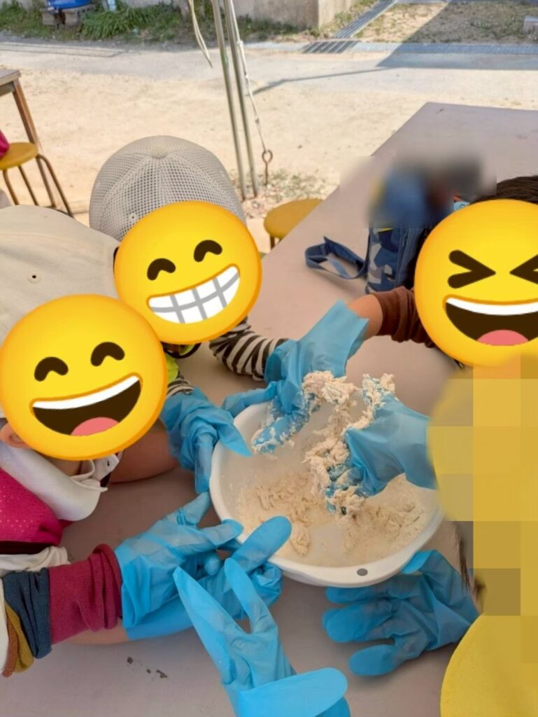 「どうやって混ぜたら良いー?」 「手袋がくっついて難しいな~」