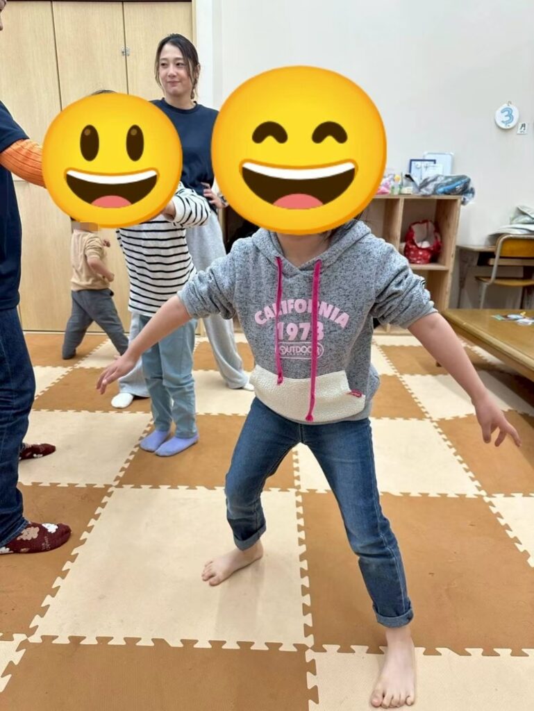 長期休みの食後には、午後のプログラムに向けてストレッチの時間があります。自分の身体の柔軟をして、動きにくさや動きやすさを感じます。スタッフも一緒にやりますよ!(^^)!