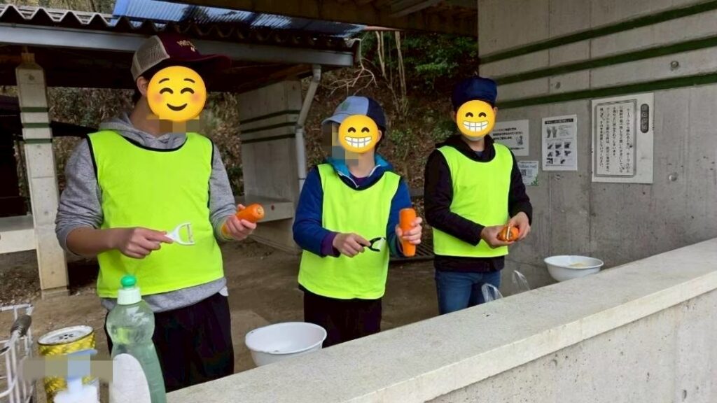 まずは、新3年生以下対象で「すいとん作り」に野外活動センターへ行きました。