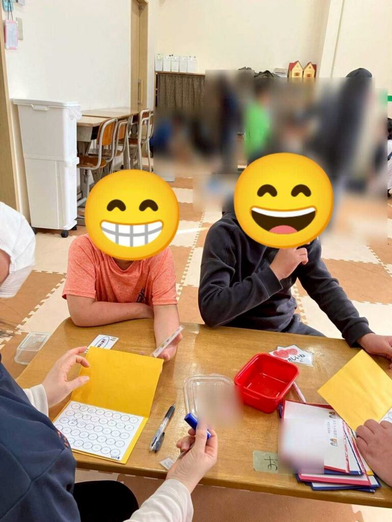 お手伝いや、優しい言葉がけ、面白いことなどをすると、「サンキューカード」を貰うことができます。このサンキューカードはお小遣いに換金され、長期休みの『おもちゃ箱ショッピング』でお菓子を買うことができます。