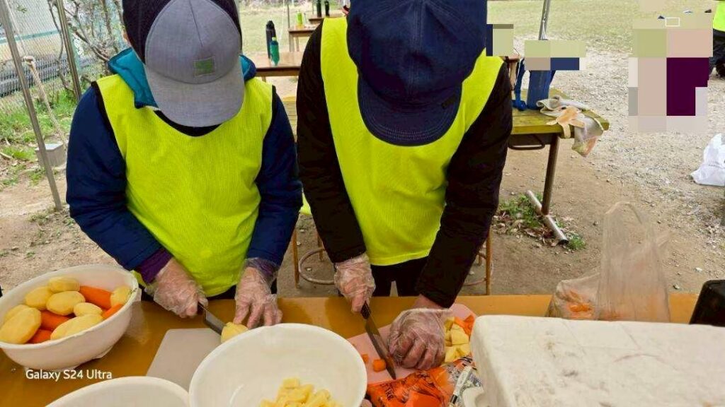 無事に全員ゴール!!!お昼ご飯は奥野施設長お手製の豚丼です。